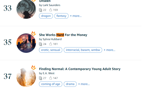She Works Hard for the Money has reached #35 in Top Fave at Amazon Kindle Vella